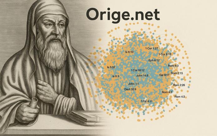 Orige.net is an open-access digital platform that applies Network Analysis to biblical quotations and theological concepts within the works of Origen of Alexandria. The project builds a searchable graph database connecting two types of nodes: passages from Origen’s works, and referenced biblical quotations. The application allows users to filter and connect biblical quotations, Origen’s writings, and doctrinal themes. The search and filter functionalities include free-text search, work-based filtering, doctrine filtering, and referenced-work filtering. The platform employs sigma.js and graphology to render interactive network graphs in the browser, enabling users to analyse centrality, proximity, and connections between scriptural and theological nodes.